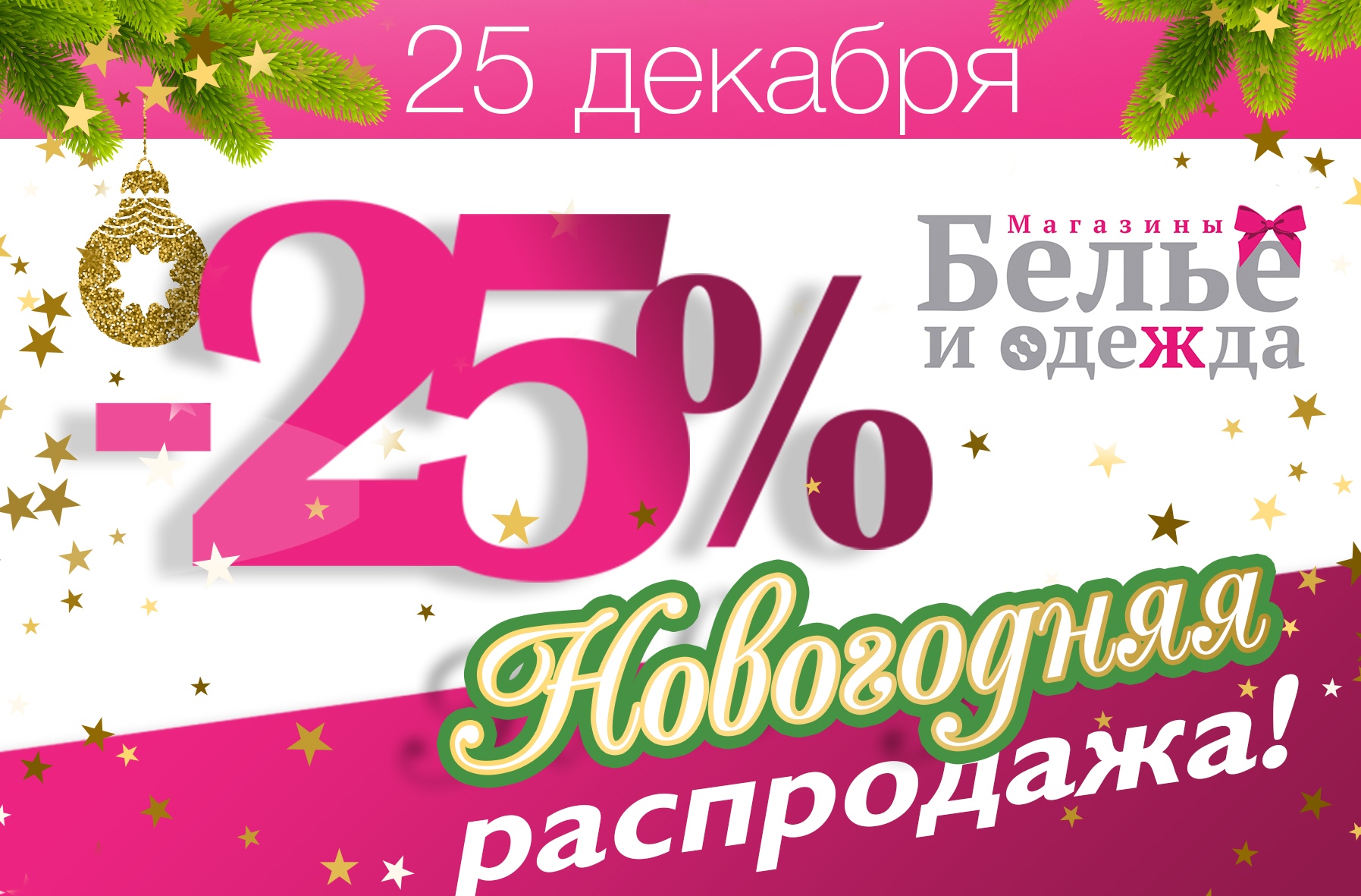 Только 25 декабря во всех магазинах «Бельё и Одежда» скидка 25%. Ждем вас!